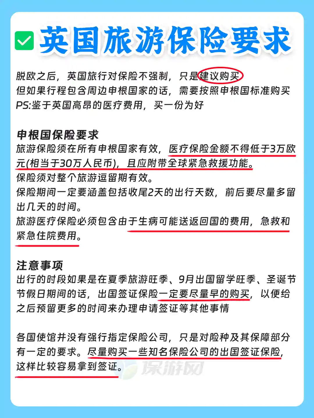 2️⃣医疗保险金额不得低于3万欧元(相当于30万人民币),且应附带全球紧急救援功能.