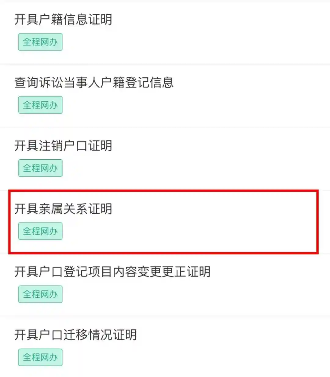 指曾经户口登记为同一家庭户人员间的亲属关系证明,亲属关系包括:父母与子女、兄弟姐妹、祖(外祖)父母与孙(外孙)子女等近亲属关系,以及户主与户成员的其他亲属关系。因开具夫妻关系证明不属于公安机关法定职责,故对网上申请开具夫妻关系证明的,不予开具。