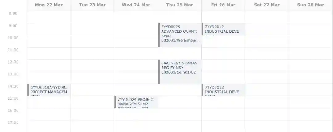 这一部分向大家介绍我所选课程的一些基本情况,下面3张图片是我的选课概览和两学期的课表。