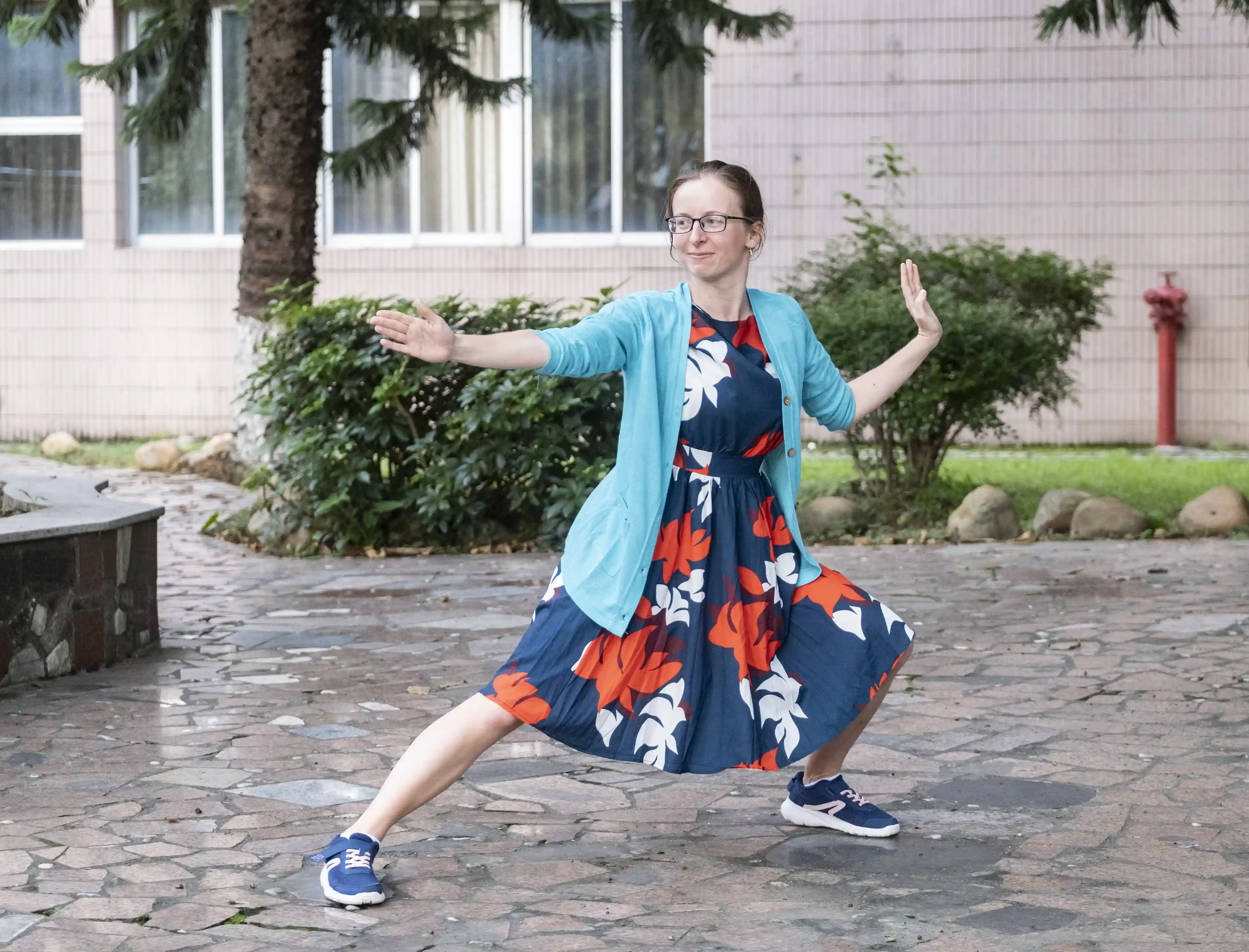 罗娜在广外校园展示武术姿势。