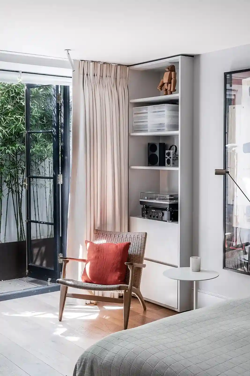 窗外种一排竹子给人宁静的感觉,坐在藤椅上晒晒太阳,听听黑胶唱片,太疗愈~