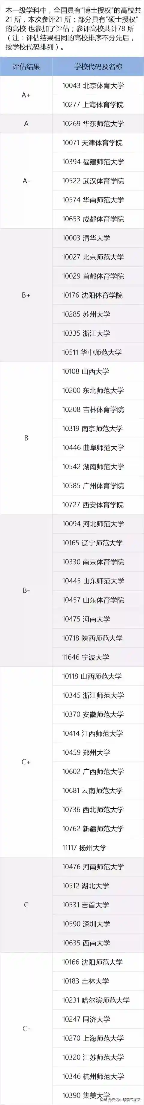 体育学学科评估A+大学:北京体育大学、上海体育大学