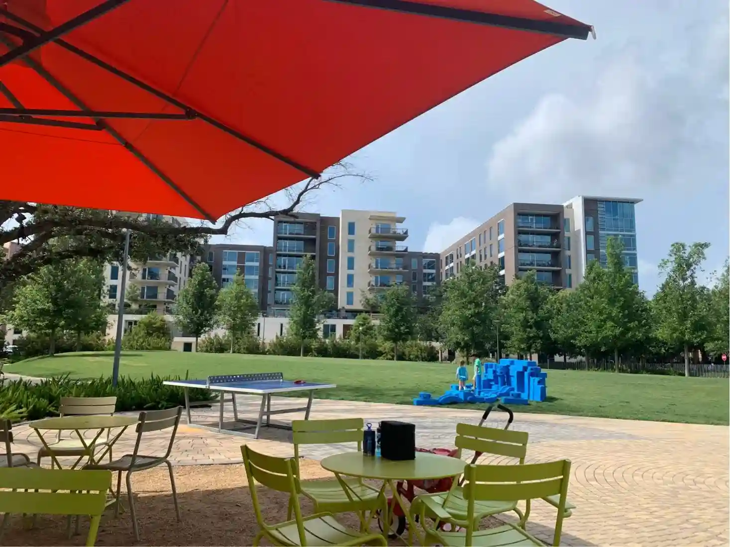 其次,就是社区公园。有滑梯、秋千、小喷泉、大草坪,还有干净的公共游泳池。也是每天太阳下山前,大宝必去的地方。