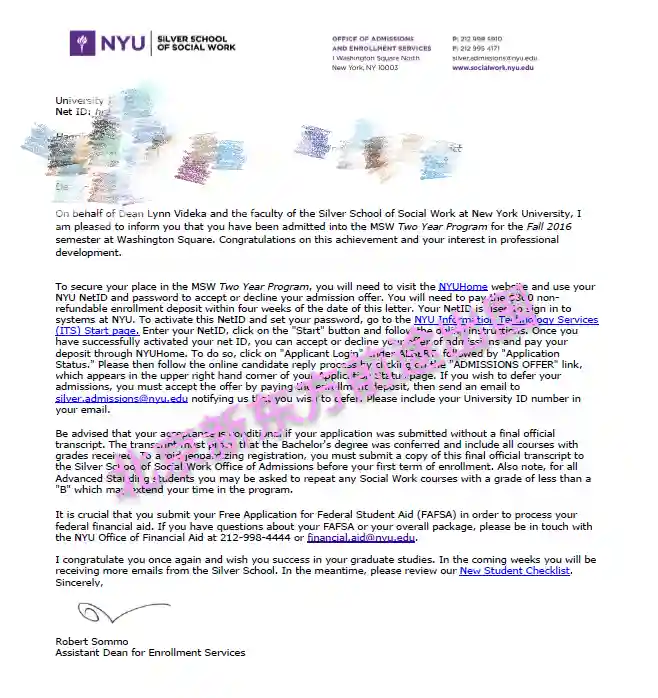 最终录取院校:纽约大学,社会工作专业(MasterofSocialWork)