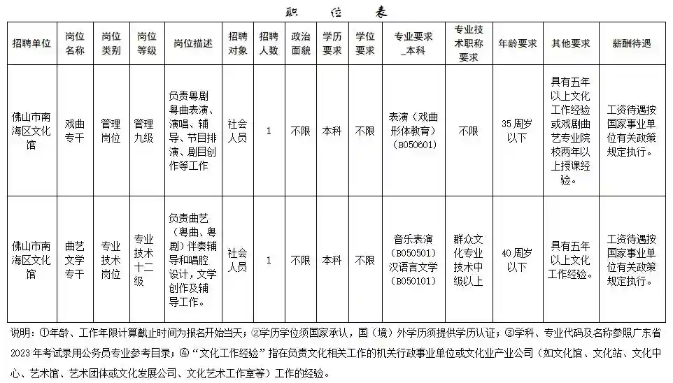 根据工作需要,佛山市南海区文化馆招聘公益一类事业单位编制工作人员2名,现公告如下: