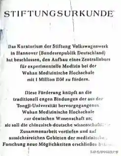 多次商谈后,联邦德国政府同意由大众汽车厂基金会援赠100万马克购置仪器设备以改善武汉医学院的科研条件。1981年3月26日,赠款仪式在武汉医学院举行,原国家卫生部、湖北省政府、大众汽车厂基金会、医学院等领导和医学院教职工代表共200余人参加设备捐赠仪式,一起见证了中德友谊之花在武汉医学院落地生根。