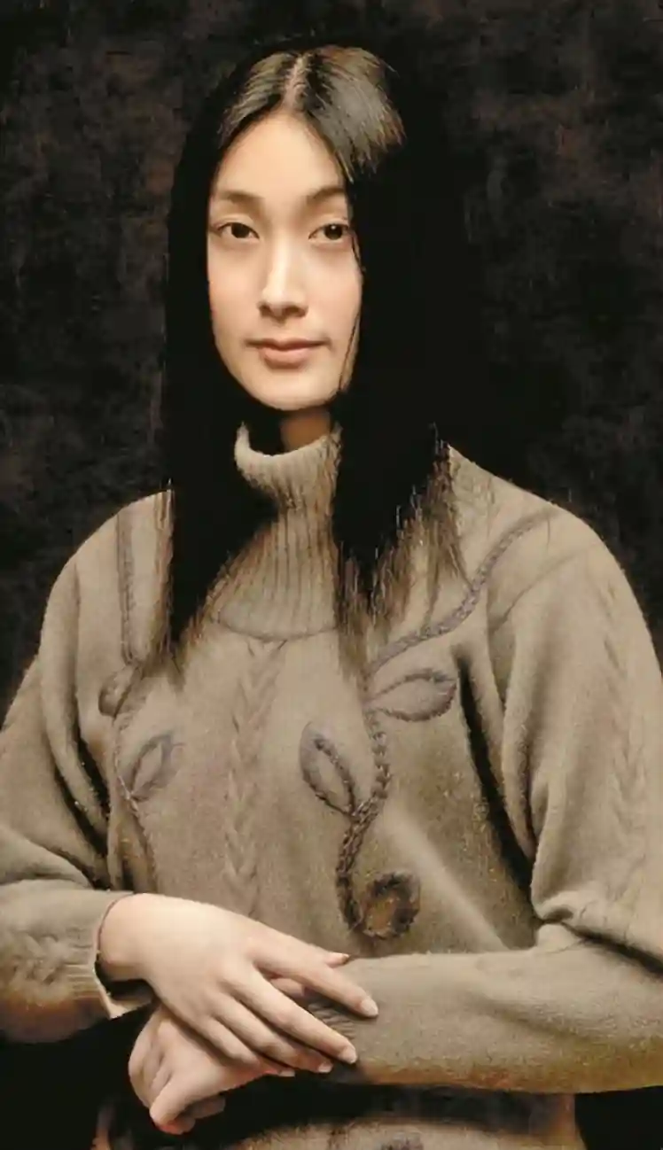 冷军的笔触捕捉了每一根发丝、每一寸肌肤,甚至连毛衣的针织纹理都清晰可见。如果驻足在画的前面,能很明显的感受到作者的温度,这可不是冷冰冰的复刻,更像是一种对生命的还原。