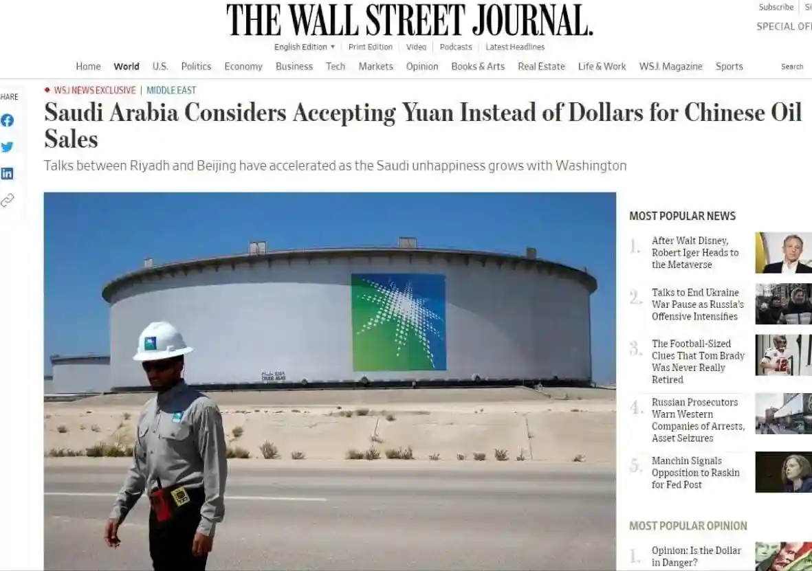 三月十五日,财联社报道称沙特阿拉伯正在与中国展开谈判,准备让部分石油交易通过人民币来进行结算,且即将达成乐观的成果。据《》称,早在2016年中阿双方就展开了相关谈判,不过一直以来都没有什么可观的进展。但是近两年来,首先是美国肆意超发货币导致了美元的大贬值,这就损害了沙特阿拉伯的经济利益;第二是美国靠着开发页岩天然气和页岩石油,瞬间成为了世界上最重要的净石油出口国之一,这就和沙特阿拉伯形成了竞争关系;第三是美国去年在阿富汗兵败如山倒,美军还尚未完全撤出阿富汗,塔利班武装就“打”进了喀布尔,颠覆了美国扶持了足足二十年的亲美政权,这让沙特对美国的实力产生了怀疑。在这三点原因的共同推动之下,沙特阿拉伯和中国就用人民币结算双方石油贸易一事的谈判获得了飞跃性的突破。