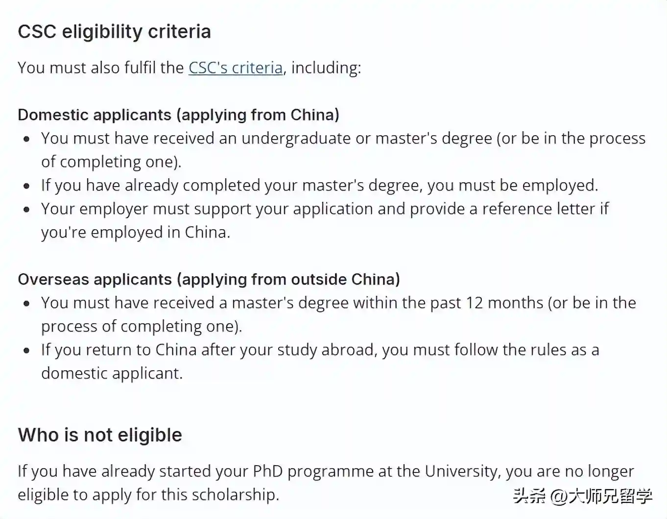 在申请之前,请确保您满足所有资格标准,包括中国国家留学基金委员会(CSC)的标准。