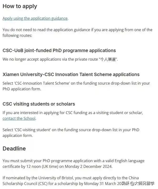 布里斯托大学博士CSC奖学金攻读博士名额:60人/年