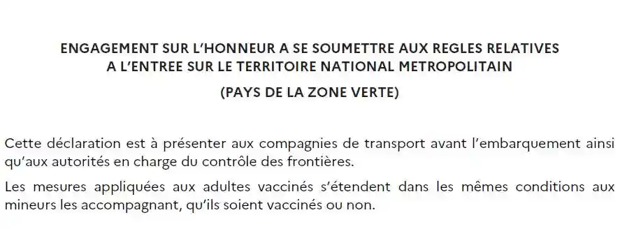 3、个人声明,个人承诺遵守有关进入法国本土的规定,即在过去48小时内没有出现证书上所列的任何症状,在旅行前14天内不曾接触过COVID-19确诊病例,承诺入境法国后在申报住址进行7天自我隔离,隔离结束后要再次接受PCR检测。