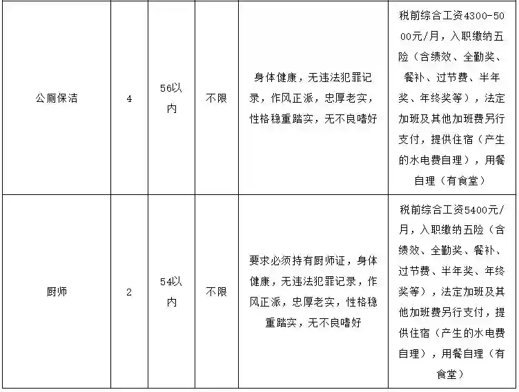 岗位要求:年龄35-50岁,初中及以上学历,品行端正,吃苦耐劳,有一定工作经验者优先。