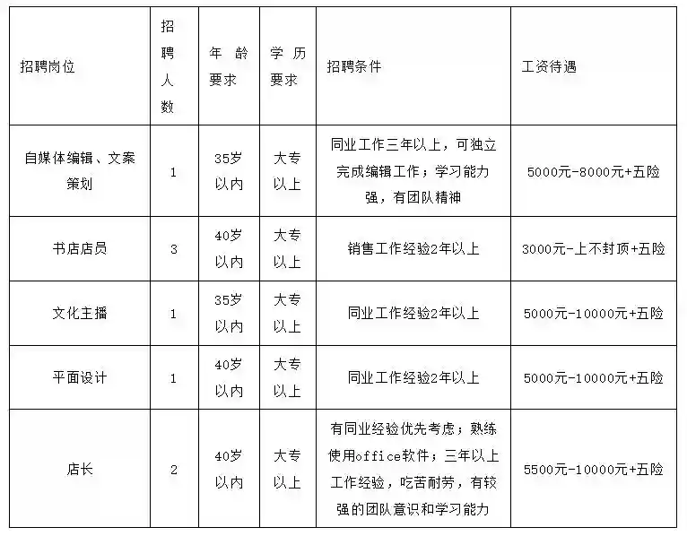 岗位要求:年龄18-45岁,中专及以上学历,品行端正,吃苦耐劳,有一定工作经验者优先。