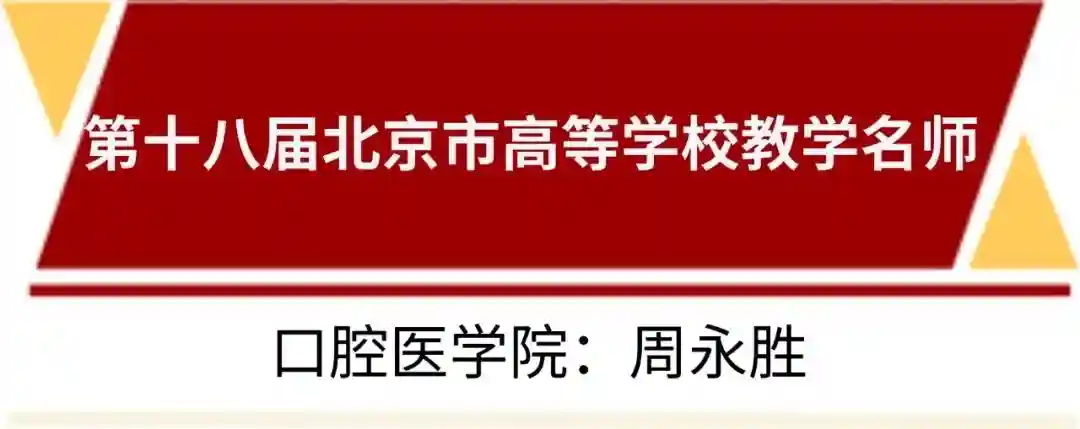 周永胜教授是国家级一流本科课程负责人,教育部首批虚拟教研室带头人,研究生精品课程负责人,北京市课程思政示范课程负责人和教学名师。获国家级教学成果奖1项、省部级教育成果奖4项,获全国优秀住培专业基地主任、北京市高校优秀辅导员、北京市师德先进个人、北京医学会优秀中青年医师、首都十大杰出青年医生称号等。2022年度获批北京市高校教学名师称号。