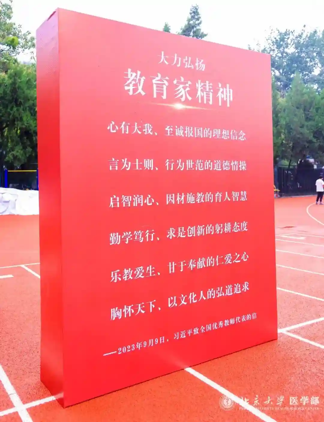 在教师节当天,北京大学医学部举办2023年开学典礼暨教师节表彰大会,隆重表彰一批躬耕教坛、贡献突出的先进教师代表,在北大医学大力弘扬习近平总书记深刻阐释的“教育家精神”。