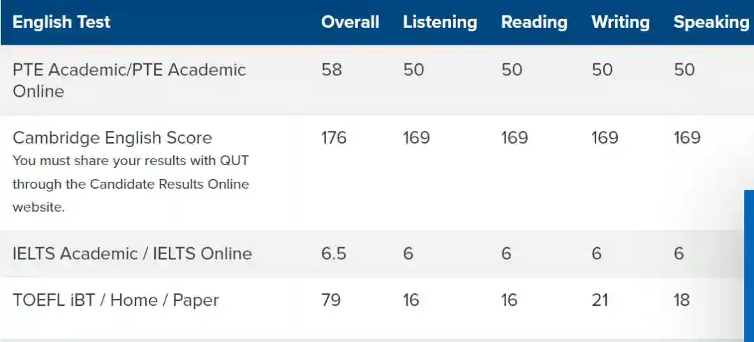 2年制:任何学科学士学位,绩点4.0及以上(根据QUT的七分制)