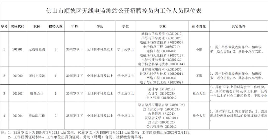 佛山市顺德区无线电监测站为区属公益一类事业单位,负责辖区内无线电业务的技术管理工作,包括无线电频谱及电磁环境监测、无线电设备检测、干扰查处、无线电安全保障等,为区无线电管理办公室的行政管理提供技术支撑,拟面向社会公开招聘控员内工作人员6名。