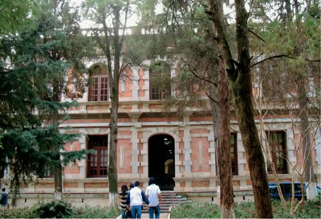 从云南大学正门拾级而上,映入眼帘就是会泽院,这是云南大学的主体建筑,建设在贡院明远楼的旧址上。会泽院由留学法国的云南籍工程师张邦翰主持设计。建筑所用石料采自昆明西山,用木船经滇池水路运至篆塘,再用马车运到工地。河沙则采自盘龙江中,砖瓦由北门外的马村砖窑供给。此时,云南省内尚不能生产水泥,经人在国外采买后通过滇越铁路运到昆明。