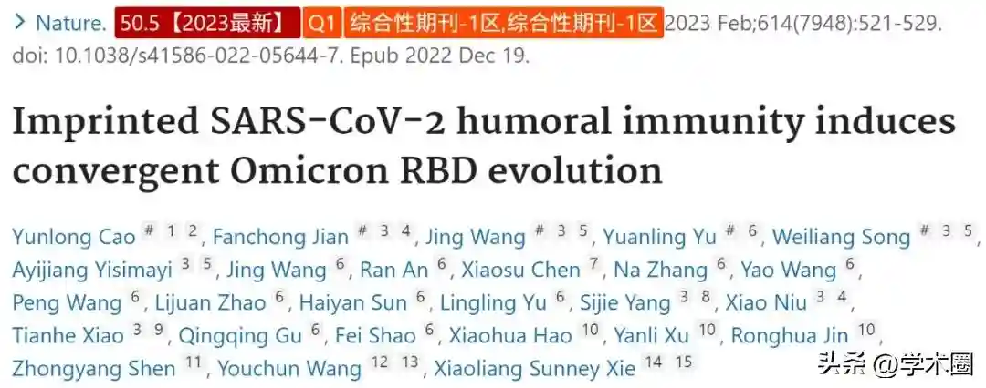 北京大学曹云龙教授中国食品药品检定研究院王佑春教授北京大学谢晓亮院士,发表研究论文:ImprintedSARS-CoV-2humoralimmunityinducesconvergentOmicronRBDevolution