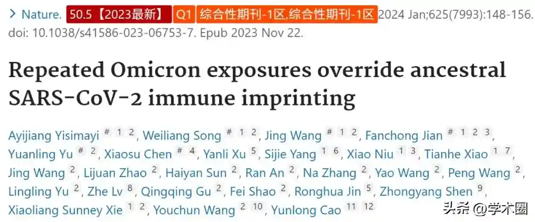 北京大学曹云龙教授,发表研究论文:RepeatedOmicronexposuresoverrideancestralSARS-CoV-2immuneimprinting