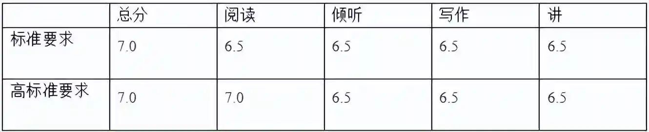 绝大部分要求总分7.0,小分不低于6.5