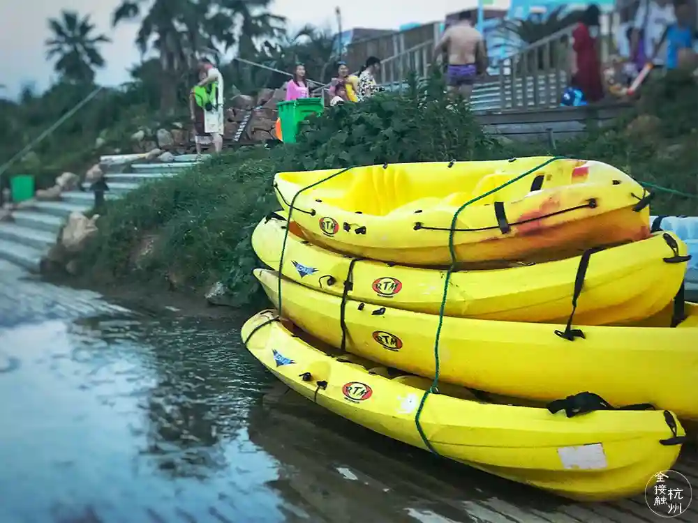 渔村旁边就是一个免费的小沙滩,可以在这边玩皮划艇,80元/时,可以4个人一起玩,平均下来每个人20,还是挺划算的。