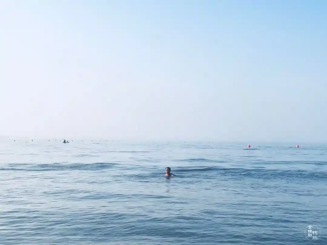 沙滩上游泳的人还蛮多的,但不会很挤。沙滩很大,你可以找一个人较少的地方游泳。如果太往深水区游,会有工作人员提醒你的,所以不用担心安全问题。
