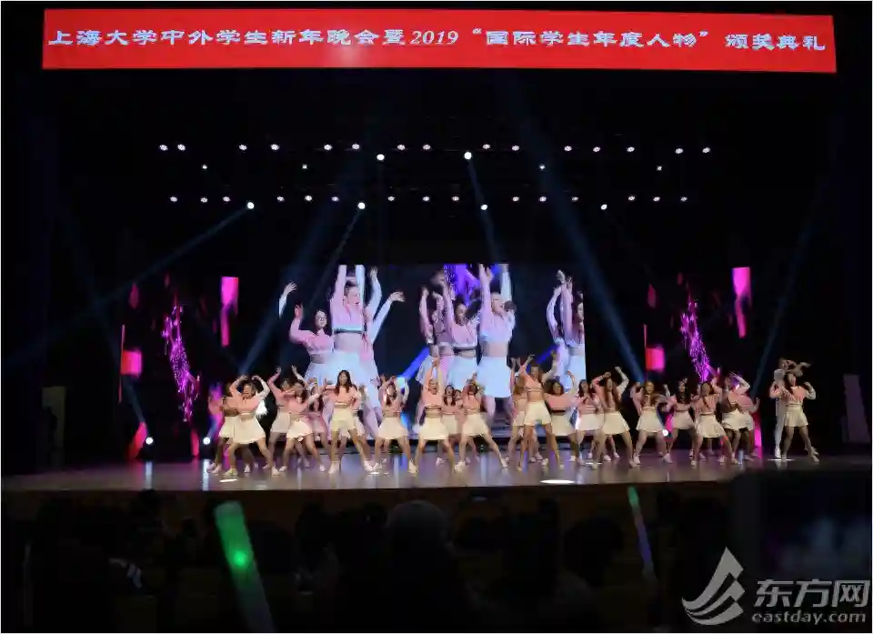昨晚,上海大学伟长楼内流光溢彩,中外学生新年晚会暨2019国际学生年度人物颁奖晚会在此举行,冬日的寒意丝毫没有影响大家的热情,千余名师生共同欣赏了这场视听盛宴。本次晚会分为“相聚上大”、“相期圆梦”、“相知融合”三个篇章,来自非洲、老挝、俄罗斯、哥伦比亚、乌克兰等各个国家的文艺节目轮番上演,展示了各国的异域风采,赢得台下观众的阵阵欢呼和掌声。