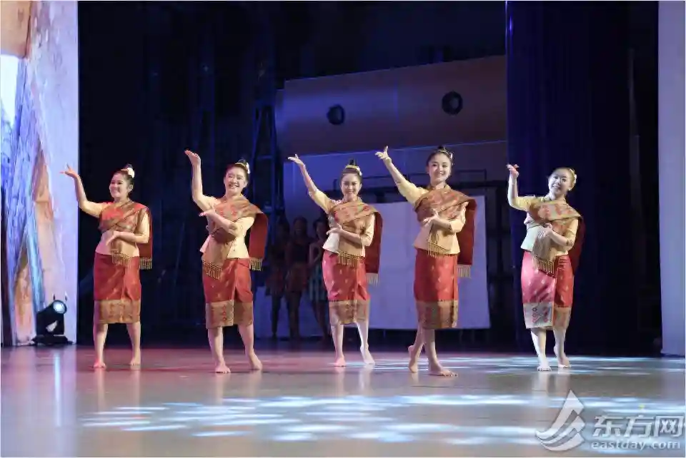 来自老挝的留学生正在表演民族舞蹈。