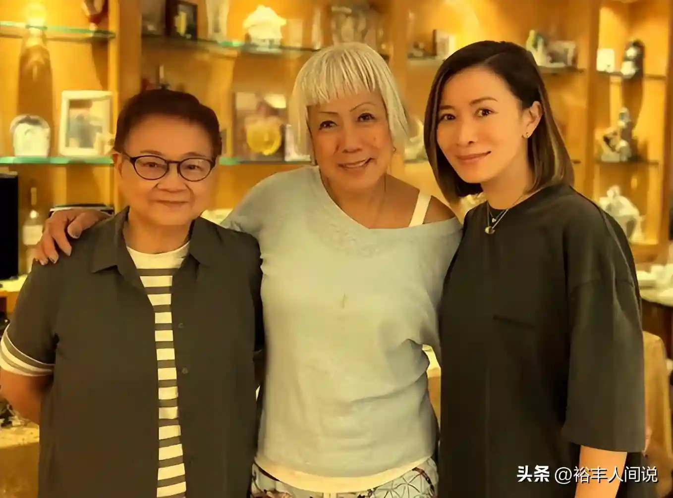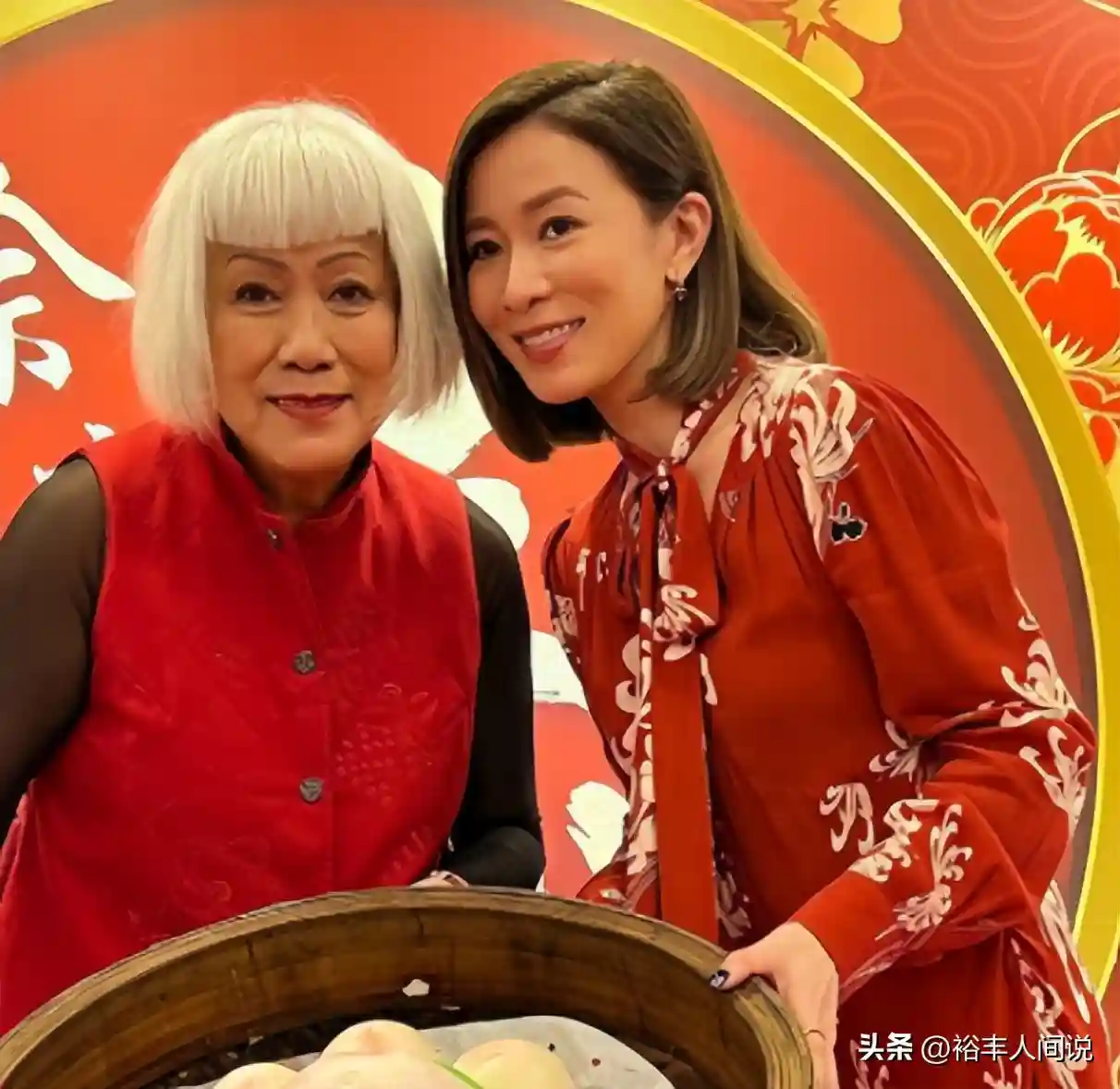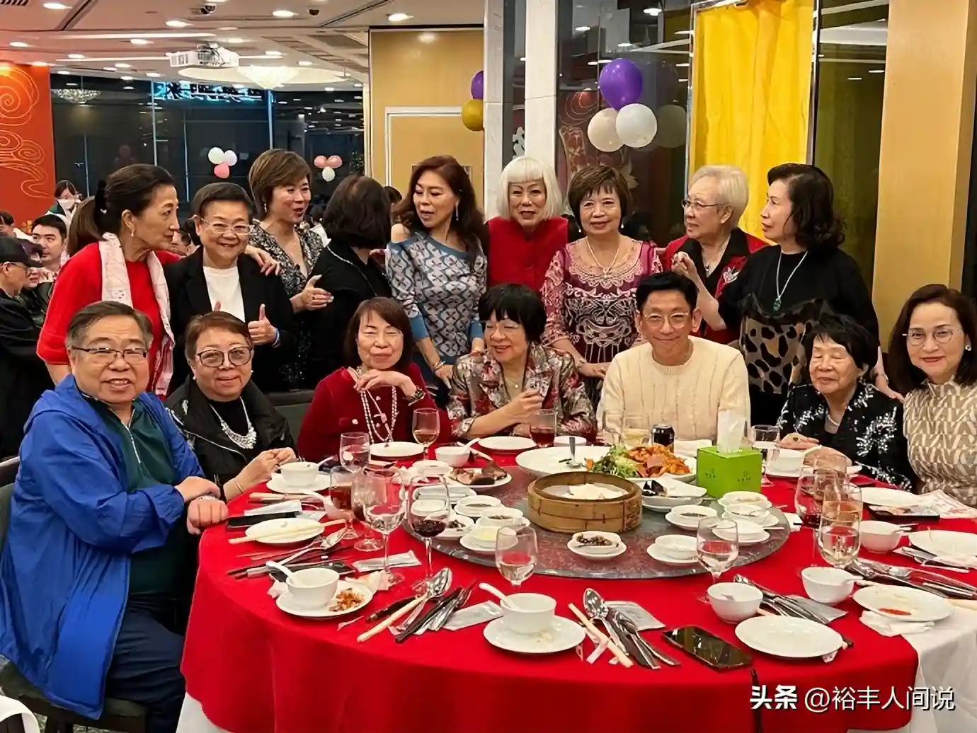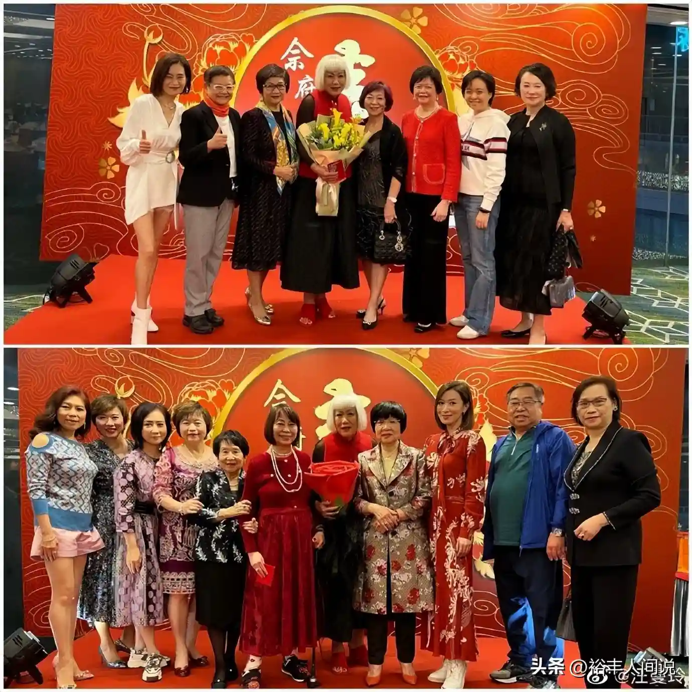 大合照中,坐在C位的妇人便是古天乐的妈妈,右边第二位则是吴君如的妈妈。除此之外,艺人马海伦、吴丽珠也有现身送福,由此可见佘妈妈在娱乐圈中也有一定的人脉。
