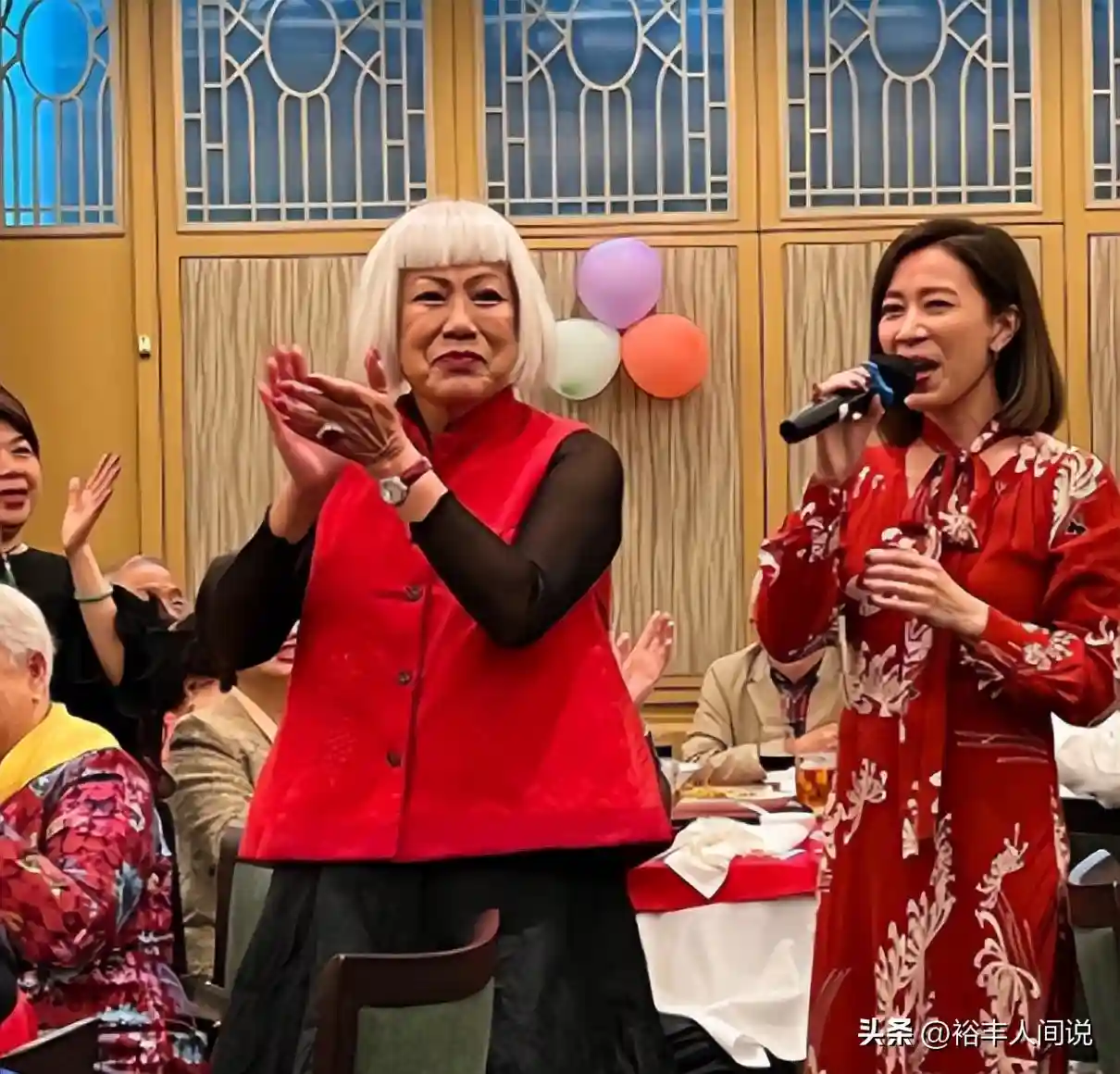 作为当天的寿星,佘妈妈当然也是精心打扮了一番,白色短发看起来气质突出,身上的着装也是透着喜气。从其身形以及状态不难看出,这些年,她在女儿的照顾下,生活得非常美满,除了为女儿理财之外,剩余的时间便是与一众星妈聚会喝茶。