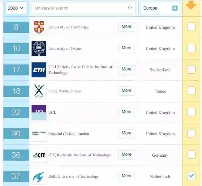 代尔夫特理工大学排名第八,亮眼的好成绩~