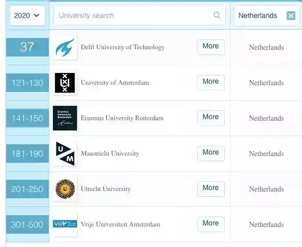 首先总的来看,荷兰学校们整体表现还不错。