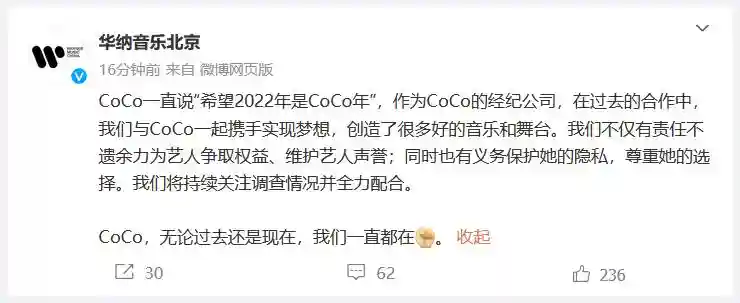 《中国好声音》官方微博17日晚间发布声明称,近日,部分自媒体帐号在网络平台散布经恶意剪辑的录音“李玟生前控诉《2022中国好声音》”,是对逝者的不尊重,也严重损害节目形象,我方表示强烈谴责。作为《2022中国好声音》的导师,李玟女士全身心投入工作,期间曾有的误会经沟通当时即已消除。出于对逝者的尊重,我们不再对此事过多解释,永远铭记她对节目的真情付出。