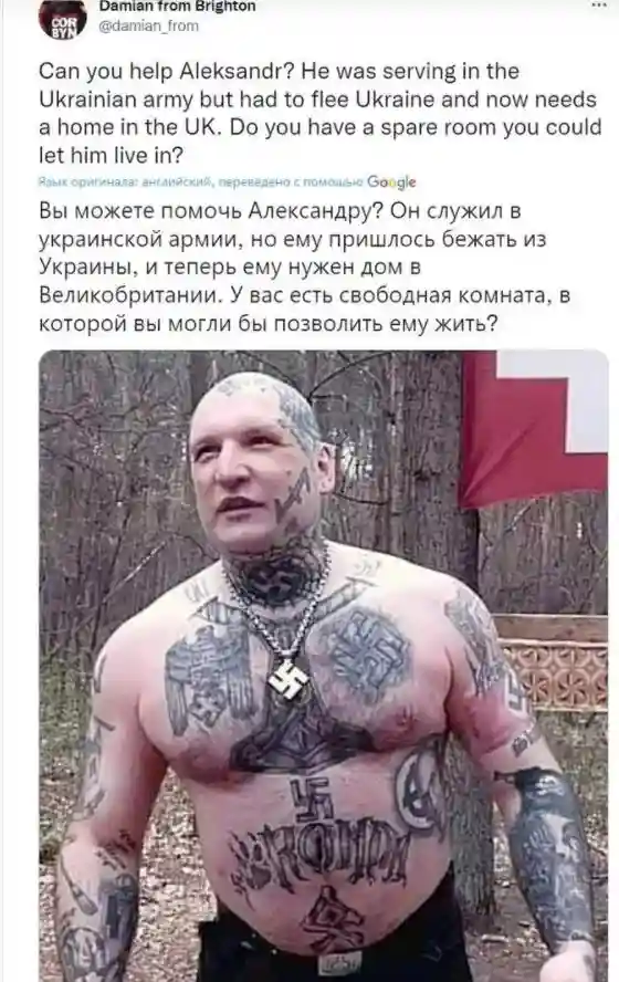 一个满身黑帮和纳粹纹身的乌克兰壮士=逃兵,英国人的同情心真的是魔幻,廉价到无以复加的地步了。