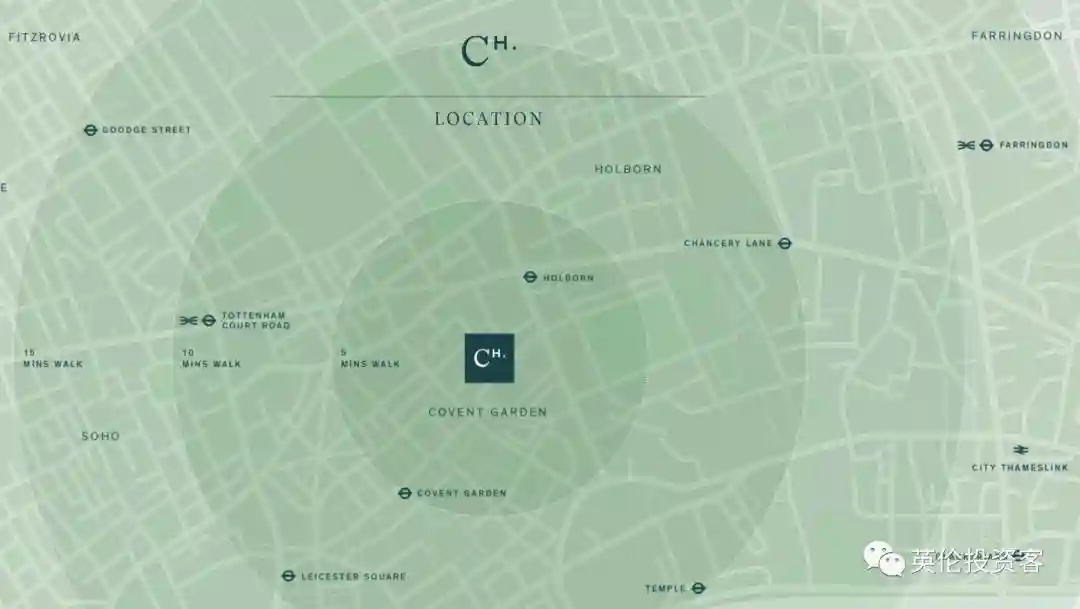 位置:位于伦敦市中心一区Holborn,邮编是WC2,金融城和考文特花园(CoventGarden)之间。