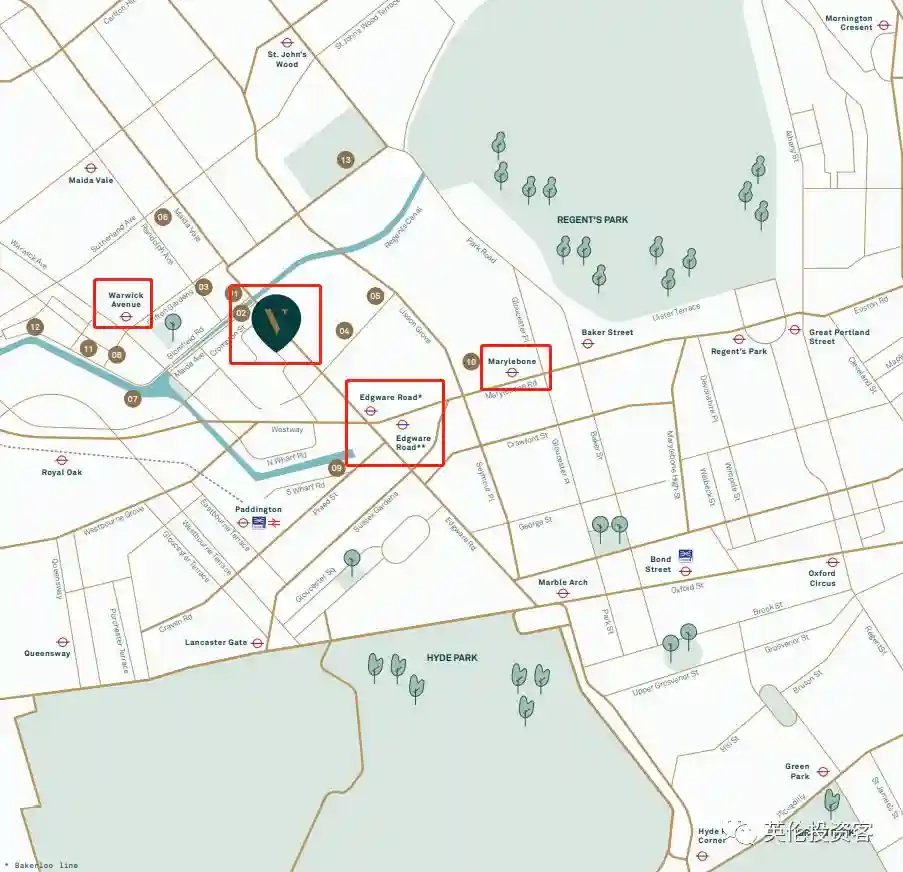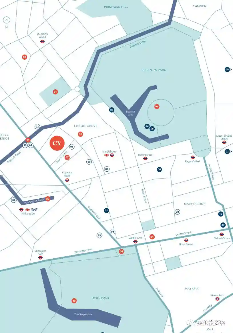 位置:位于牛津街和梅费尔以北,位于摄政公园和海德公园之间,是伦敦位置最核心、最负盛名的伦敦传统富人区之一。