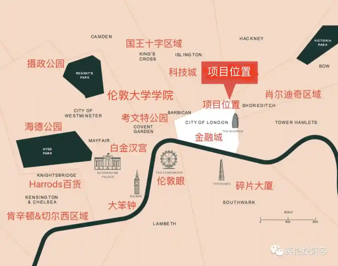 位置:位于伦敦二区交通核心社区,四周环绕四大经济板块—北邻Startford,南近CanaryWharf,西达CityofLondon,东抵ABP亚洲商务港。