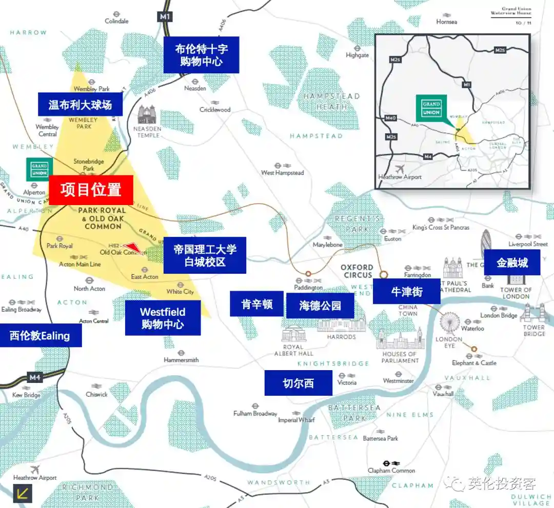 位置:位于伦敦北三区,紧邻北伦敦运河GrandUnionCanal、ParkRoyal商务区、Westfield购物中心、温布利大球场和帝国理工白城校区。