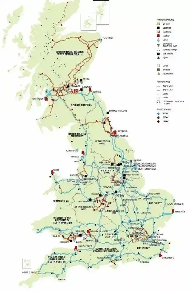 图2英国电网的主网架