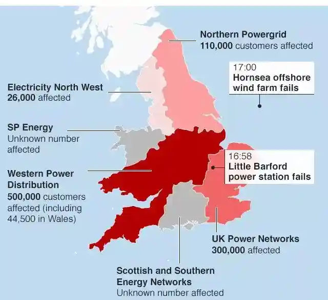 这是自2003年“伦敦大停电”以来,英国发生的规模最大、影响人口最多的停电事故。