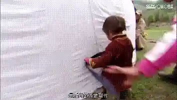 最后一步,也是最重要的一步,就是固定蒙古包,肖芮也加入进来,用绳子把蒙古包一圈一圈的缠了起来。