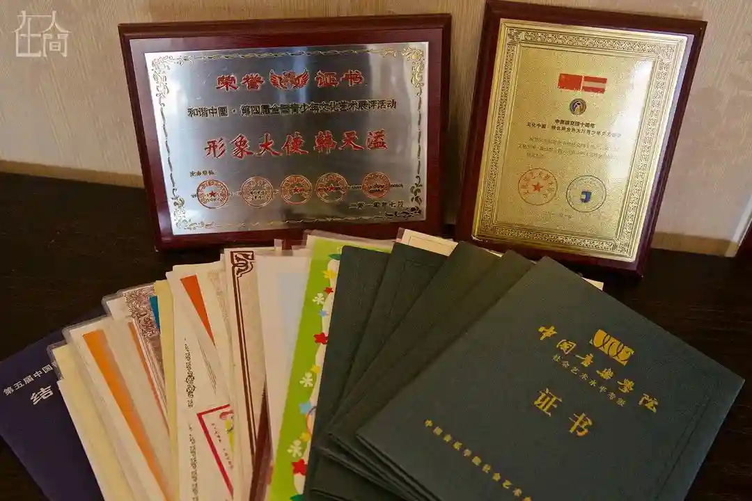 母亲苏文平将证书都收集起来。“他最近数学成绩下降,有点丧失信心,我就把他小时候数学的获奖证书拿给他看,鼓励他小时候能比别人学的好,现在也一样可以”,苏文平说。
