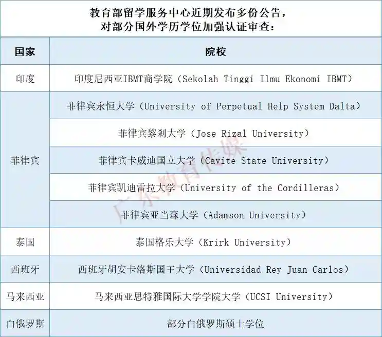 近日,广东省教育厅发布《转发教育部留学服务中心关于对部分国外院校学历学位加强认证审查的公告》。