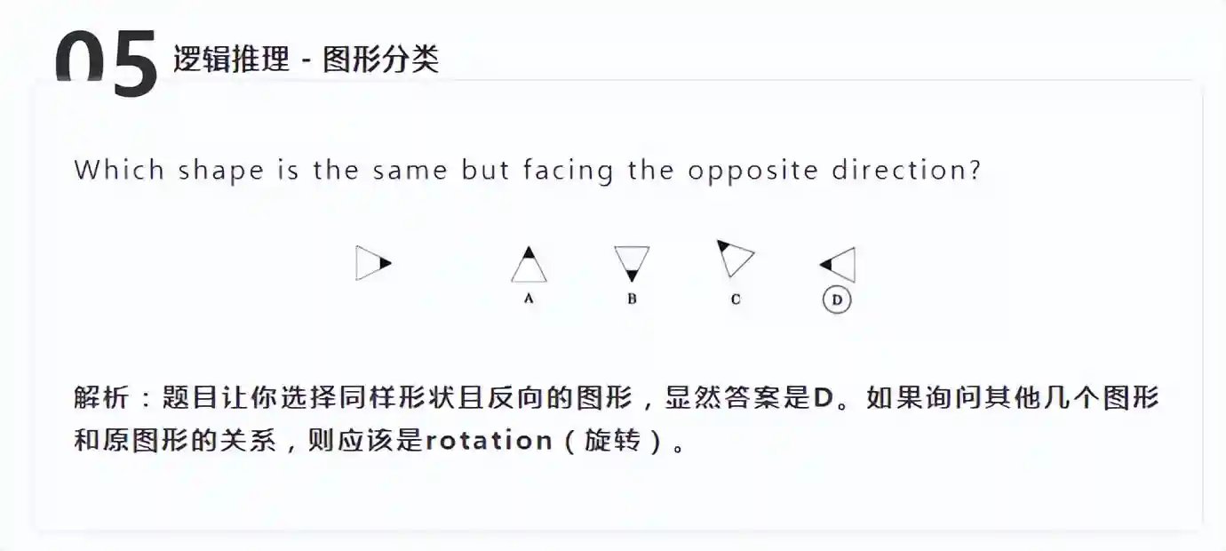 逻辑推理第一种题型是图形分类(figureclassification)。这类题目会给出几个图形,学生需要找到图形的共同点或差异点及关系。