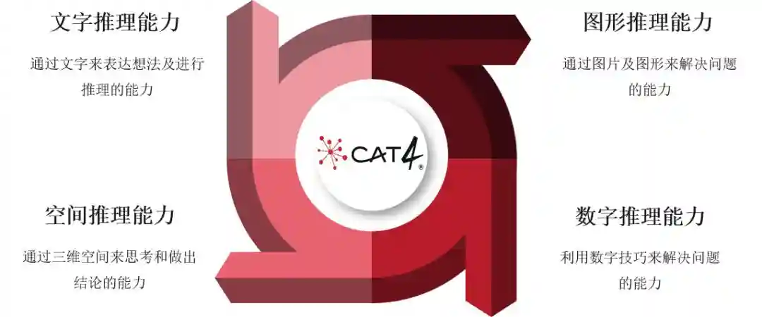 CAT4,全称为CognitiveAbilitiesTest,是认知能力测试,由大名鼎鼎的出题机构GLassessment出品,用来评估学生的发展能力和未来学术能力。