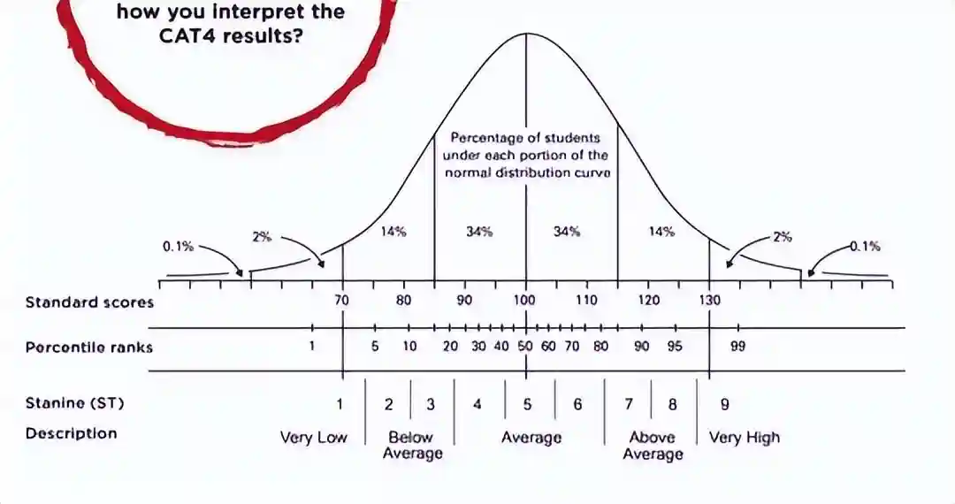 CAT4考完首先会有一个原始成绩(RawScore),这是由学生答对的题目数量决定的。而该成绩和同年龄学员表现情况对比,运用数学方法得出三个最重要的正态分数。