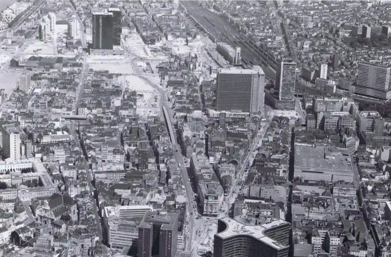 二战前的布鲁塞尔和其他欧洲城市风貌几无二致,新古典主义与折衷主义9建筑群里偶尔有数座现代建筑穿插其中,但高度依然相当克制,拿下举办权后,城市开始发生翻天覆地的变化。郊区的世博园、市区道路的建设、广场的改造等逐项工程开工,市中心历史建筑此时也成了碍眼的存在,被下令拆掉以让位于更新更高更现代的大楼。