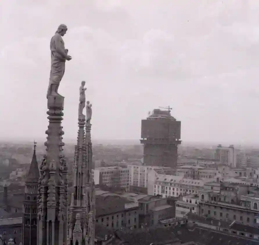 1960年,从米兰大教堂屋顶望向已经封顶的Velasca大厦