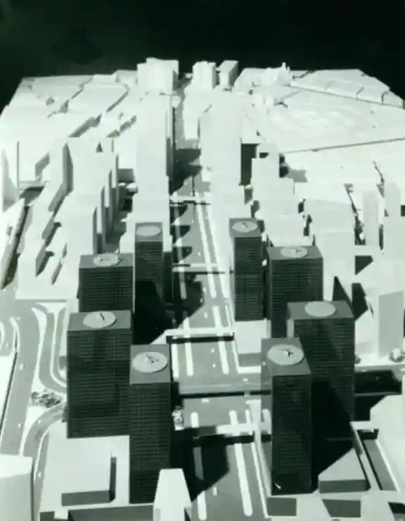 规划中的布鲁塞尔世贸中心建筑模型,后遇上经济危机,只完成了三座